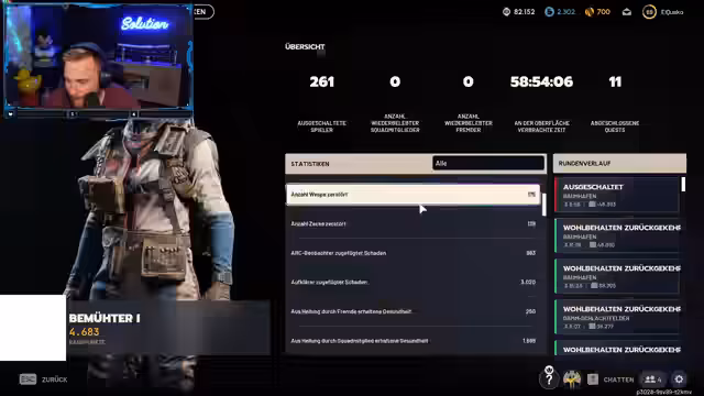 08:37:19Aufgrund der spielerischen Rückschläge, bei denen wertvolle Ausrüstung und Ressourcen verloren gingen, bereiten sich Streamer und Chat auf das bevorstehende Materialchen-Event vor. Ziel ist es, Materialien wie Munition und Schilde zu farmen und die Spielerbasis wieder aufzustocken, um zukünftige Runden erfolgreicher zu gestalten.