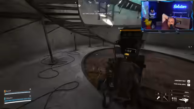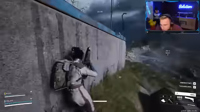 09:08:34Der Streamer kooperiert mit einem Mitspieller namens Zerg, um ein gegnerisches Team zu bekämpfen. Es kommt zu einer taktischen Aktion mit Granaten und der Versuch, die Gegner in eine Falle zu locken. Die Situation eskaliert, als der Streamer von einem Gegner von hinten angegriffen wird. Der Fokus liegt auf der dynamischen Kampfsituation, der Kommunikation im Team und dem Versuch, durch geschickte Positionierung die Oberhand zu gewinnen.