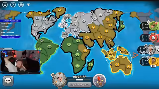 09:20:56Der Streamer ist frustriert über das Gameplay und äußert die Befürchtung, er könne ausgelöscht werden. Er ist mit seiner Position unzufrieden und denkt über den Einsatz von Jokern oder speziellen Fähigkeiten nach, um eine Wende zu erzwingen. Er sieht Weiß als seine größte Gefahr und wird nervös, als dieser Spieler aktiv wird. In einem wütenden Moment beschließt er, eine Attacke auf Rot zu starten und seine Truppen zu verschieben, was jedoch zu weiteren Komplikationen führt. Der Tonfall des Streams ist geprägt von Nervosität und wütender Enttäuschung über sein vermeintliches Pech.