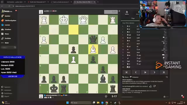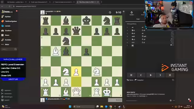 10:21:42Nach einem taktisch anspruchsvollen Zug gelingt es dem Streamer, die Schachpartie zu gewinnen. Er reagiert enthusiastisch und beschreibt den Zug als "Sahne". Der Gewinn wird als wichtiger Schritt in der Challenge gefeiert. Allerdings ist er sich bewusst, dass dies nur ein Teil seiner Aufgaben ist. Auf die Aufgabe hin, die restlichen Challenges zu meistern, zeigt er sich überfordert und gibt an, noch zu wenig abgehakt zu haben. Er erwähnt seine intensive Liste mit Challenges, die er in den nächsten Stunden bewältigen muss.