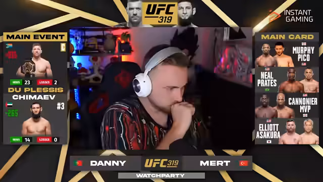 10:31:40Nach einem ersten Kampf beginnt das Gespräch über die bevorstehende UFC-Veranstaltung, als das Hauptprogramm erst um 16 Uhr startet. Die Community plant eine Watch-Party über mehrere Streams und Discord-Kanäle. Technische Aspekte wie das Öffnen von zwei Discord-Accounts und das Muten der Übertragungen werden besprochen, um ein koordiniertes und sicheres Erlebnis zu schaffen. Es werden Wetten auf die Kämpfe diskutiert und verschiedene Kampfquoten analysiert, wobei Risiken und Potenziale der Kämpfer wie Ramsat Thagapso und Islam Machev erörtert werden.