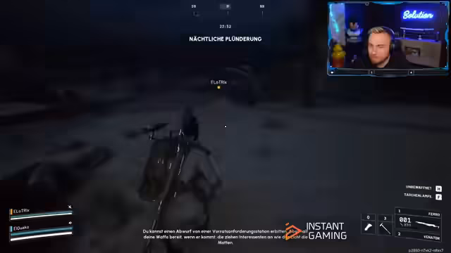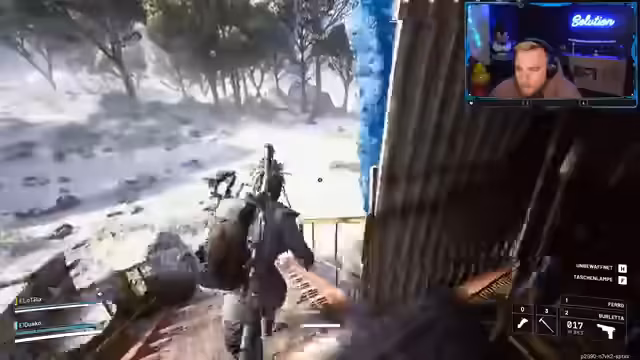 05:23:46Der Streamer sammelt weiterhin Standardressourcen durch das Aufbrechen von Gegenständen. Nach der aktuellen Runde plant er eine kurze Pause, um neue Quests anzunehmen. Während des Spiels kommt es zu einem Kampf mit Raidern, bei dem er und Carsten einen Gegner stark beschädigen. Kurz darauf werden sie jedoch von hinten beschossen. Er äußert seine Frustration über die Situation und die plötzliche Anwesenheit von zwei Gegnern aus dem Sturm. Er überlegt, ob sie die Gegner flanken oder direkt angreifen sollen. Trotz der Schwierigkeiten gelingt es ihnen, einen Gegner auszuschalten, und der Streamer freut sich über den gewonnenen Loot, obwohl er bedauert, dass der andere Gegner entkommen ist.