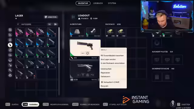 05:17:44Der Streamer reflektiert über eine erfolgreiche Runde, in der er mit der Skettler zwei Gegner ausgeschaltet und einen weiteren mit einer Granate getroffen hat. Er betont die Wichtigkeit, Schilde zu reparieren, und erinnert sich an einen befriedigenden Moment, als er durch Rauch eine Flair sah. Aktuell benötigt er 26.000 Einheiten, um sein Lager zu erweitern, da dies ein wiederkehrendes Problem darstellt. Er erwähnt, dass er theoretisch Enten verkaufen könnte, dies aber nicht möchte. Zudem hat er viele Metallteile gesammelt und freut sich über neue Craft-Items, die er zur Verbesserung seiner Ausrüstung nutzen kann, darunter eine Osprey 2 Anvil Venator, die er als sehr wichtig erachtet.