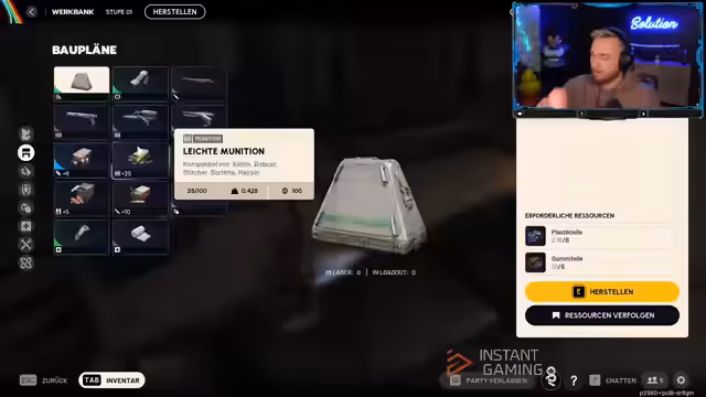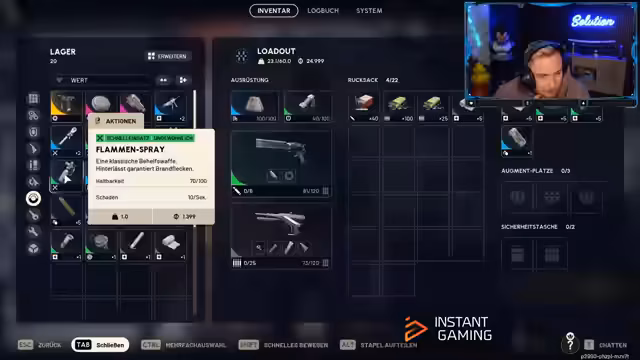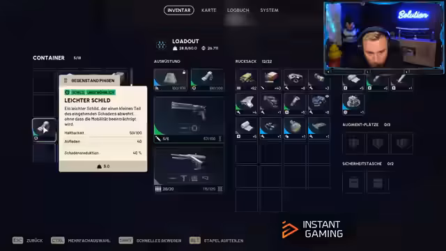 05:19:56Der Streamer berichtet, dass er in den letzten Spiel-Sessions viel Ausrüstung verloren hat, was dazu führt, dass auch seine Craft-Materialien aufgebraucht sind. Er freut sich daher besonders, wenn er neue Gegenstände findet. Er betont, dass der Verlust von Schilden und anderen wichtigen Items frustrierend sein kann. Er überlegt, welche Gegenstände er mitnehmen soll und erwähnt den Bauplan für den Snapshot, den er finden möchte. Zudem fragt er den Chat nach der Nützlichkeit eines Flammensprays und diskutiert, ob es sich lohnt, dieses zu verkaufen oder zu zerlegen. Er erwähnt auch, dass der Snapshot-Bauplan durch Quests erhältlich ist und er eine Quest abgeschlossen hat, die eine Granate erfordert, die 70 Schaden im Hinterhalt verursacht.