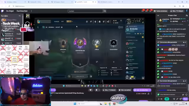 03:50:28Nach dem Ende des Counter-Strike-Spiels wechselt der Streamer mit seinem Team zu League of Legends. Es gibt technische Schwierigkeiten beim Einloggen und Lobby-Einrichtung. Das Team besteht aus Spielern unterschiedlichen Levels (von Level 23 zu Platin), was zu Spannungen führt. Der Streamer äußert Bedenken wegen des Leistungsunterschieds und des Matchmakings. Trotz der Schwierigkeiten startet das Spiel.