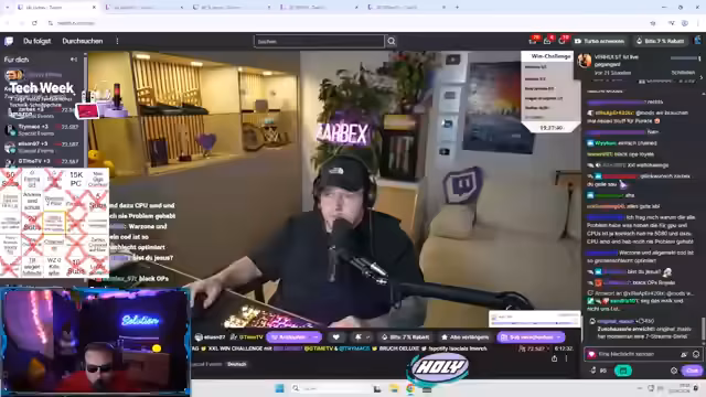 05:04:54Nach mehreren League of Legends-Spielen wechseln die Streamer zu Warzone und Chain Together. Die Community wird aktiv in die Entscheidungen einbezogen, über Abstimmungen im Chat. Gleichzeitig gibt es Giveaways für Shirts und Unterstützung für die Streamer durch Follower und Subs.