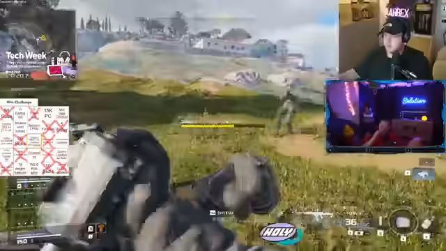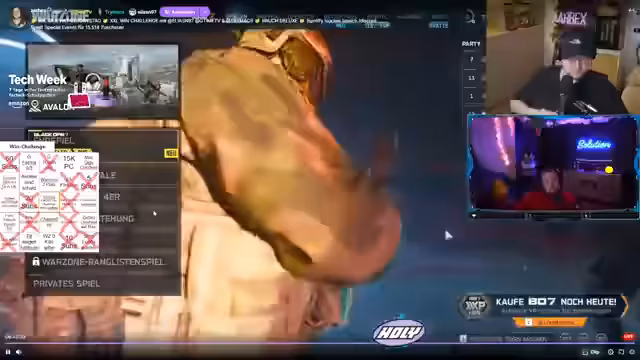 05:22:28Der Fokus verschiebt sich komplett zu Call of Duty: Warzone. Die Streamer versuchen, in einer Bot-Lobby Siege zu erreichen, was aufgrund der geringen Gegnerzahl als machbar gilt. Die Technikprobleme und die ungewohnte Spielweise machen die Challenge jedoch zu einer besonderen Herausforderung. Die Spieler diskutieren über Spielmechaniken und Lobby-Einstellungen.