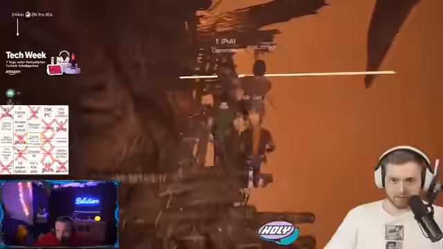 07:38:49Nach einem missglückten Versuch in der Challenge diskutiert der Streamer mit seinen Mitstreitern über die Weiterplanung des Streams. Es geht um die Entscheidung, welches Spiel als Nächstes gespielt werden soll, wobei verschiedene Optionen wie Valorant, Party Animals oder ein Horrorspiel ins Gespräch kommen. Der Streamer ist besorgt über den Zeitdruck und die physische Belastung, besonders bei anstehenden Challenges wie Malenia.