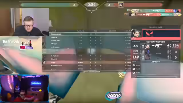 09:26:54Das Team gerät in eine schwierige Situation, als es 10-7 gegen den Gegner zurückliegt. Der Streamer beschreibt die intensive Action und die Versuche, das Spiel zu drehen. Es kommt zu technischen Problemen, die das Spielerleiden zusätzlich verschärfen. Trotzdem zeigt das Team Resilienz und findet einen Weg, sich zurück ins Spiel zu kämpfen, wobei besondere taktische Manöver und Executes zum Einsatz kommen.