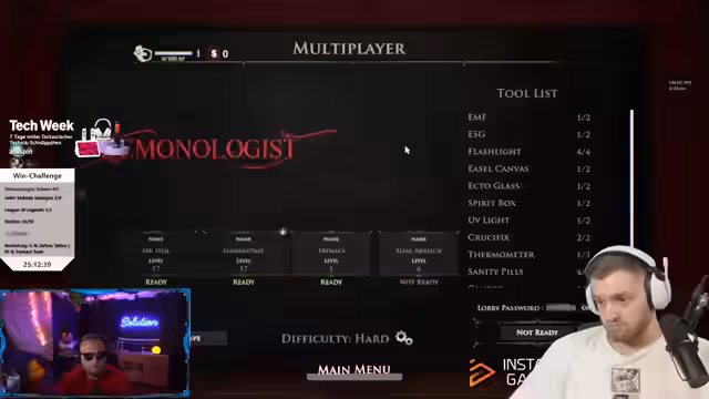11:05:54Die Streamer beginnen mit dem Spiel Monologist auf dem Schwierigkeitsgrad 'schwer'. Sie diskutieren über die Wahl der Karte und ob sie auf 'Albtraum' erhöhen sollten. Gleichzeitig werden letzte Vorbereitungen getroffen, um die verbleibenden Herausforderungen in der 48-Stunden-Challenge meistern zu können. Nach erfolgreichem Abschluss des Monologist steht als Nächstes Chain Together an.