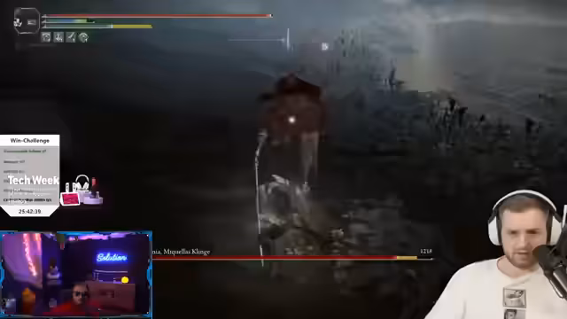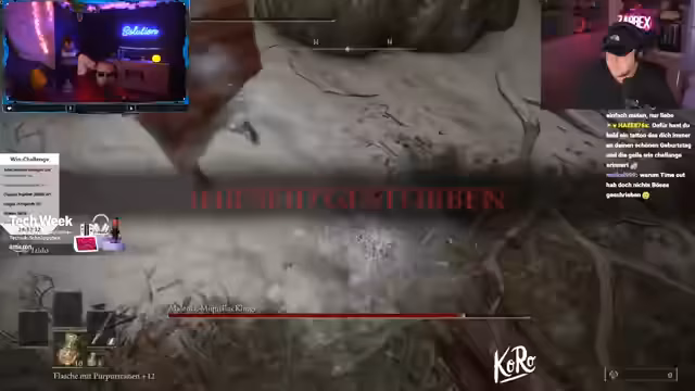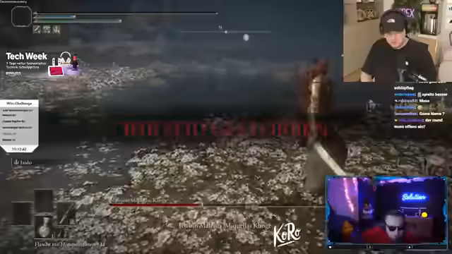 12:17:58Der Streamer diskutiert verschiedene Gaming-Challenges und Coaching-Erfahrungen. Er berichtet über einen Elden Ring Durchlauf mit Malenia als Boss, bei dem es zu Fehlkalkulationen kam und die Herausforderung als extrem beschwerlich beschrieben wird. Besonders hervorgehoben wird ein Coaching-Situation mit einem Spieler namens Eli, das negativ bewertet wird, da wichtige Informationen wie die Sprint-Funktion nicht mitgeteilt wurden.