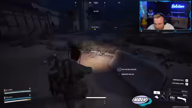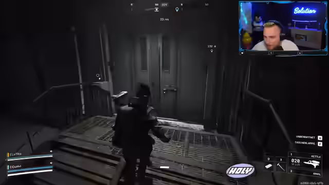 04:49:20Der Streamer gesteht ein, dass er im Spiel normalerweise schlecht ist, sich aber für seinen Partner Danny Mühe gibt. Er findet ein wertvolles Item für Dannys Waffe zur Aufwertung und weist ihn an, es in die Sicherheitstasche zu legen. Sie müssen einen Scanner in der Luft zerstören, werden aber entdeckt. Ein Kampf entbrennt, bei dem der Streamer stirbt. Er bedauert, dass er geschossen hat, da es ein Reflex war, obwohl die Gegner 'friendly' signalisierten. Er stellt fest, dass er kein Schild und keine Heilung mehr hatte, was zur Niederlage führte. Er verliert seine Shotgun und Anvil, ist aber froh, dass er eine Ersatz-Anvil im Inventar hatte, dank eines Hinweises aus dem Twitch-Chat. Er reflektiert, dass der Kampf unnötig war und sie hätten entkommen können, indem sie eine Rauchgranate geworfen und die Schleuse geschlossen hätten, da man in fünf Sekunden nicht 'gedowned' und 'gefinished' werden kann, wenn man in der Schleuse liegt.