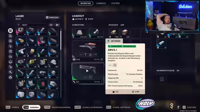01:44:51Der Streamer startet ein Tutorial für 'Arc Raiders', um den Einstieg ins Spiel zu erleichtern. Er geht auf das Inventar, den Loot, die verschiedenen Qualitätsstufen von Ausrüstung und die Herstellung von Waffen über Baupläne ein. Es werden die Konzepte der Sicherheitstaschen, die wertvolle Gegenstände schützen, und der 'Gier', die im Spiel bestraft wird, erklärt. Wichtige Einstellungen wie Nachtmodus und Push-to-Talk werden ebenfalls besprochen.