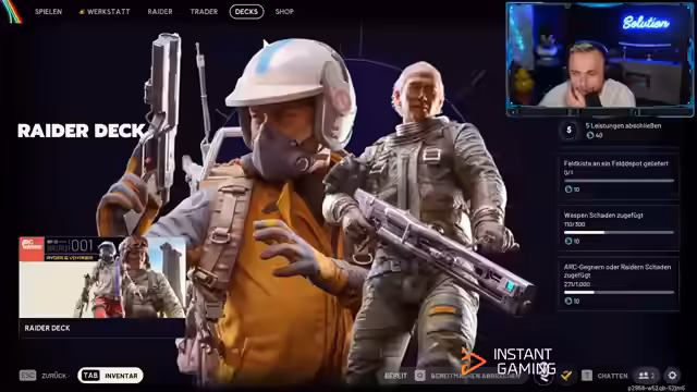 02:13:38Das Spiel wird als Koop-Erlebnis mit Emotes zur Kommunikation und Kooperationsmöglichkeiten präsentiert. Der Fokus liegt auf dem Einsammeln von Beute, insbesondere von dicken Rucksäcken, und dem Erstellen eines eigenen Loadouts. Eine zentrale Mechanik ist der kostenlose Tausch des Freeloader-Rucksacks gegen eine bessere grüne Version bei einem Händler nach einer erfolgreichen Runde. Das Spiel beinhaltet auch einen Raider Pass, der durch eine blaue Ressource, die man durch Spielen und Quests erhält, freigeschaltet werden kann.