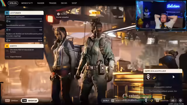 02:12:55Quests sind ein wichtiger Bestandteil des Spiels, da sie wertvollen Free Stuff als Belohnung bieten. Es wird die Möglichkeit des Teamings mit anderen Spielern durch In-Game-Emotes diskutiert, um gemeinsam zu looten oder Gegner zu überlisten. Der Streamer plant, ein eigenes Loadout zusammenzustellen, wobei dicke Rucksäcke Priorität haben, um mehr Loot tragen zu können. Eine wichtige Mechanik ist die Umwandlung eines Standard-Rucksacks aus einem Free Loadout in eine bessere, grüne Version, sobald man erfolgreich entkommen ist. Dies geschieht bei den Tradern, insbesondere bei 'Lens Klinik', wo man eine 'Beute Marke' gegen eine verbesserte Version tauschen kann. Der 'Hahn' in der Werkstatt sammelt nach jeder Runde kostenlose Crafting-Materialien, die man abholen kann. Dieser Hahn kann auch aufgewertet werden, um noch mehr Materialien zu erhalten. Die Charakterentwicklung erfolgt über einen Fertigkeitsbaum, in den man Punkte investiert, um Fähigkeiten wie Ausdauer zu verbessern, wobei Marathonläufer als erste Verbesserung empfohlen wird.