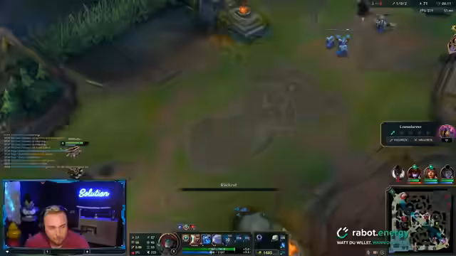 01:17:08Der Streamer äußert Frustration über den Spielverlauf, insbesondere über die Schwierigkeit, den Startpunkt des Tankers zu antizipieren, da niemand mehr 'pullt'. Er erwähnt, dass sein 'rap-up' startet, was ihn aber nicht sonderlich zu interessieren scheint. Im weiteren Verlauf des Spiels beschreibt er, wie er 'Poker getradet für fucking CS' hat und keinen 'Ekko mehr gesehen' hat, der bereits Level 2 erreicht hat. Er reflektiert über seine Leistung und stellt fest: 'Ich dachte ich bin gut gegen echo', um dann zu ergänzen 'bin ich mir auch vielleicht gespielt was mache ich jetzt kein flash julia mit dem sapi reden wir'. Die Situation wird als kritisch empfunden, da er ohne Flash spielen muss und die Botlane ohne ihn ist. Er betont die Wichtigkeit, ruhig zu bleiben ('Ich muss jetzt sehr chillen, kein Flash Z-Botline Ohne Witz das Z-Jungle-Spiel, das finde ich so geil Nur Liebe'). Die Gegner scheinen gut zu spielen, und er hat das Gefühl, nicht mithalten zu können: 'Ich hab nicht das Gefühl, dass ich ihn fighten kann. Ich hab das Gefühl, dass der fickt mich komplett in den Arsch. Alle gemisst. Jedes Minion gemisst.' Er überlegt, ob er resetten sollte, um nicht unnötig Zeit zu verschwenden.