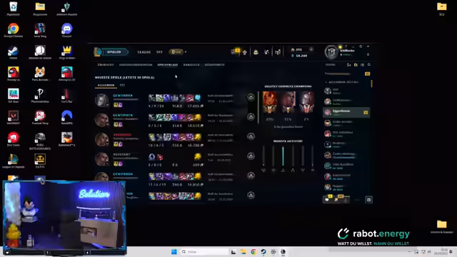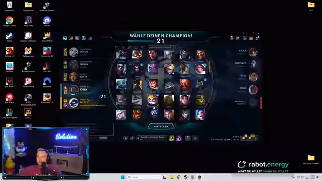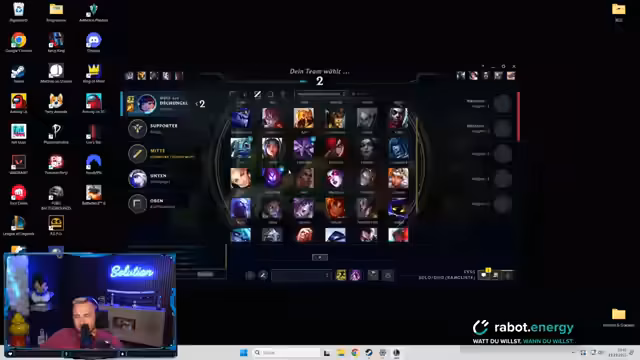 08:16:44Ein Spieler äußert den Wunsch, vor dem 18. des Monats zu grinden, da er danach für sechs Tage nach Korea reisen wird, was die Dringlichkeit der Trainingsphase unterstreicht. Die Diskussion über Champion-Picks für das Turnier geht weiter, wobei Lissandra als guter Pick für Teamfights vorgeschlagen wird. Es wird auch über die Verfügbarkeit von Vassili für zukünftige Streams gesprochen. Der Streamer plant, nach dem aktuellen Stream Discord-Gespräche zu führen, um die weiteren Schritte und die Teamzusammenstellung für das Turnier zu klären. Am Ende des Streams zieht der Hauptstreamer Bilanz: neun Stunden gestreamt, Solo-Queue gespielt, gute Elo gewonnen und kündigt an, dass Carsten am nächsten Tag vorbeikommt. Er bedankt sich bei den Zuschauern für die Unterstützung und beendet den Stream.