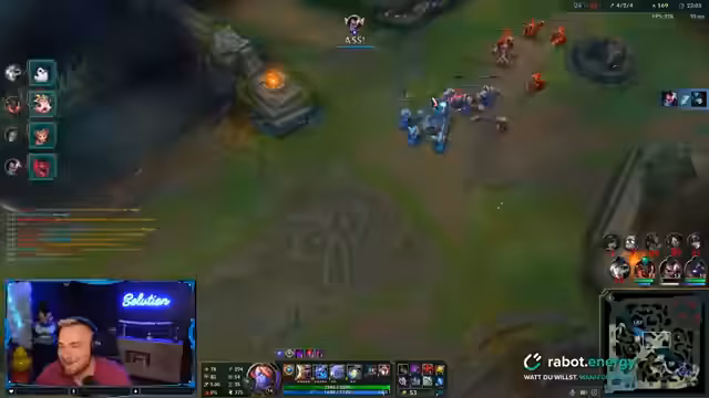 07:52:06Es kommt zu kritischen Teamfights, bei denen die Spieler versuchen, sich abzustimmen, um den Gegner zu überraschen. Eine Situation, in der das Team von fünf Gegnern überrannt wird, führt zu einer Selbstkritik bezüglich der Erwartungshaltung. Die Diskussion über die Ulti-Fähigkeiten der Champions und deren Einsatz in Teamfights zeigt die strategische Tiefe des Spiels. Es wird angemerkt, dass die Akali des Gegners besonders stark ist und das Team Schwierigkeiten hat, sie zu kontrollieren. Die Spieler versuchen, sich gegenseitig zu motivieren und die Schuld für Misserfolge nicht allein auf Einzelne zu schieben, sondern die Botlane als Ursache für die Schwierigkeiten zu identifizieren. Die Bedeutung der Gruppierung für effektive Kämpfe wird betont, da das Team oft in Unterzahl kämpft.