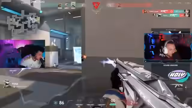 07:04:53Zu Beginn des Streams ist der Fokus auf die ersten Runden des VALORANT-Spiels. Der Kommentator beschreibt die Spielsituation auf der Map, insbesondere um die B-Seite und Mitte. Es gibt intensive Taktiken wie das 'Swoogen' und das Kontrollieren von Räumen mit Werkzeugen wie Cypher und Breach. Die Kommunikation zwischen den Spielern, Chef, Phoebe und Nils, ist zentral, um Angriffe zu koordinieren und Informationen auszutauschen. Der Streamer lobt die Teamleistung und die genutzten Strategien wie Smokes und Flashes.