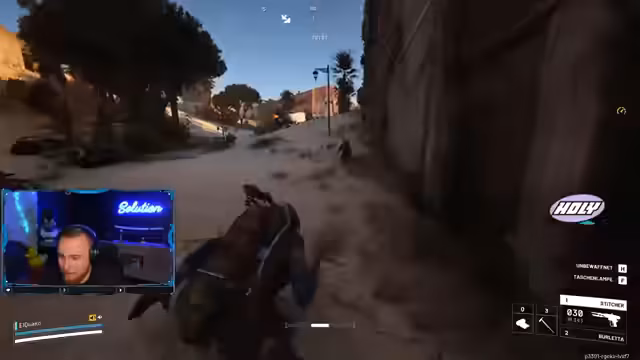 05:48:20Der Streamer startet einen Solo-Raid, lootet Ressourcen und trifft auf einen anderen Spieler. Es kommt zu einer freundlichen Begegnung: Er fragt 'You're friendly?', findet ein Blueprint und verhandelt über Kooperation. Trotz Vorsicht ('nicht schießen, wie du siehst') bleibt die Interaktion positiv. Gleichzeitig analysiert er Waffeneigenschaften und kritisiert den Umhang als unpraktisch, da er das Looten blockiert. Die Szene zeigt die Dynamik von PvP und PvP in der Spielwelt.