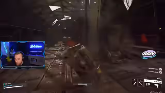 05:59:06In einer explosiven Situation wird der Streamer von einem Raketenwerfer getroffen und ruft um Hilfe ('Defib here!'). Nach einer angespannten Phase mit mehreren Revive-Versuchen wird er von einem Teammitglied stabilisiert. Sie diskutieren die Stärke des Raketenwerfers als 'overpowered' und 'schlimmste Waffe im Spiel'. Anschließend jagen sie den Angreifer, wobei sie Koordination und Schnelligkeit betonen. Die Szene unterstreicht die Bedeutung von Teamplay und schnellen Reaktionen.