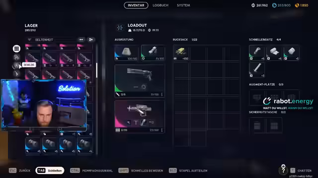 06:52:04Der Streamer bereitet sich auf die 'Kammer des Erpels' vor, ein zentrales Event im Spiel. Er sammelt Loot und diskutiert die notwendige Ausrüstung, darunter Shock-Minen, Smokes und Barrikaden. Währenddessen wird eine erste Runde gespielt, in der er auf Gegner trifft und den Loot eines toten Raiders auswertet, wobei die Spannung und Aufregung über unerwartete Funde betont wird. Der Chat wird in die Strategie einbezogen, während der Streamer die Kammer öffnet und sich auf kommende Kämpfe vorbereitet, wobei die Wichtigkeit von Geduld und Vorbereitung hervorgehoben wird.