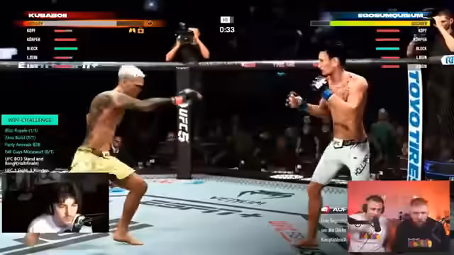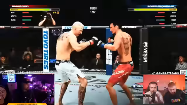 03:58:52Das Turnier im UFC-Spiel wird kommentiert, wobei technische Probleme bei den Downloads der Teilnehmer für Diskussionen sorgen. Insbesondere Chef benötigt über 76 Minuten für den Download, was als zu lang und unvorbereitet angesehen wird. Die Organisatoren diskutieren, ob eine Disqualifikation oder das Warten auf weitere Teams, die noch laden, die faire Lösung ist. Man entscheidet sich, das Turnier fortzusetzen und die Situation für die finale Platzierung zu bewerten, während die Kampf-Modi wie 'Stand and Bang' und 'Best of Three' finalisiert werden.