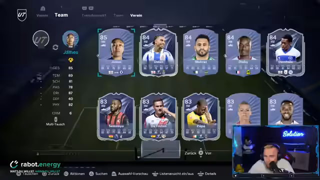 02:03:05Die Spieler werden aufgefordert, ihre Teams zusammenzustellen und sich um 20:15 Uhr im Discord zu treffen, um ihre Mannschaften zu präsentieren. Es wird über die Auswahl von Marquinhos diskutiert, der als gute Option für das Team angesehen wird. Die Spieler sind sich einig, dass das Team Potenzial hat, obwohl zehn Siege in der Weekend League als schwierig erachtet werden. Die Linksverteidigerposition in der Bundesliga wird erneut thematisiert, wobei Alphonso Davies als Hauptoption genannt wird. Es wird auch über andere Spieler wie Lisa Rasu und Grimaldo gesprochen, die als Alternativen in Betracht gezogen werden. Die Spieler suchen nach den besten Optionen, um ihre Teams zu optimieren und die Chemie zu verbessern.