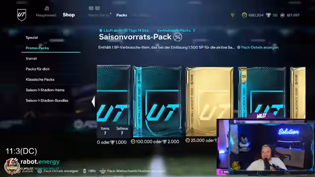 01:18:34Die Anzahl der notwendigen Siege wird per Rad entschieden und für jeden Teilnehmer festgelegt. Willi muss 11 Wins holen, Danny 10 und der Streamer 12. Als Strafe bei nicht erreichten Zielen müssen 15 Abos an einen anderen Streamer abgegeben werden. Weitere Regeln: Bronze-Spieler dürfen erst nach der 60. Minute ausgewechselt werden, das Maximal-Rating ist 83 und das Team muss aus maximal einem Icon bestehen.