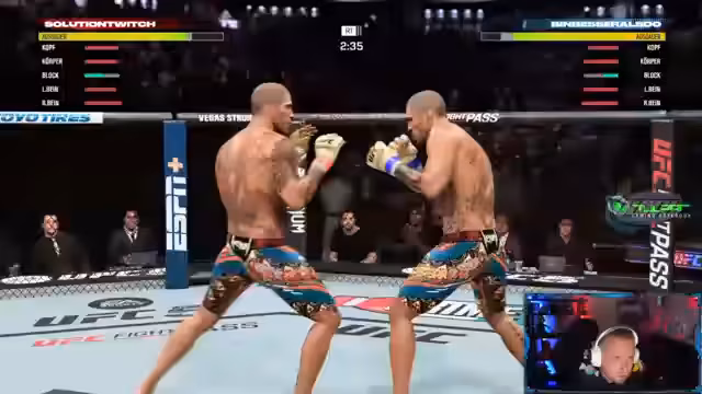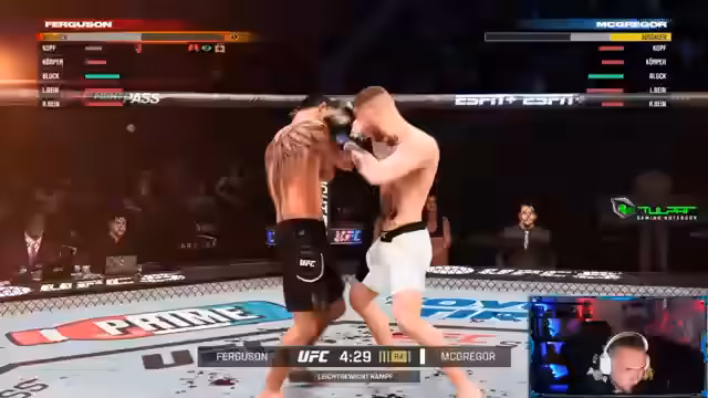 03:07:28Der Streamer beginnt ein UFC-Spiel, speziell in der "Stand-in-Bank"-Ranglistenmodus. Er beschreibt den Kampf und verschiedene Techniken, die er einsetzt. Es gibt einige technische Probleme mit dem Controller, was ihn frustriert. Der Kampf ist intensiv und er ist bemüht, die richtige Strategie zu finden. Der Streamer kommentiert den Kampf und bemerkt, dass er in einigen Runden überlegen ist, in anderen jedoch Schwierigkeiten hat.