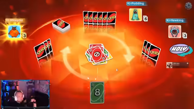 05:00:00Nach dem UFC-Kampf wechselt der Stream zum Spiel UNO, wo er gegen Zuschauer in Back-to-Back-Runden spielt. Die Stimmung ist intensiv, mit emotionalen Reaktionen auf Spielzüge. Der Streamer bewundert einige Hände der Gegner und ärgert sich über seine eigenen Spielfehler. Es werden wieder Unterstützer genannt und weitere Runden angekündigt.