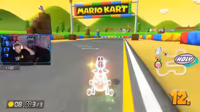 02:31:10Der Streamer beginnt ein Ranked-Mario-Kart-Spiel solo. Er stellt fest, dass er ohne Teammates spielt und damit seine Leistung nur von ihm selbst abhängt. Er beginnt mit dem Rennen auf einem bekannten Kurs und beschreibt die verschiedenen Items und Strategien. Er erwähnt, dass er nur mit sich selbst kommunizieren kann, da es keine Teammates gibt. Das Spiel verläuft eher durchwachsen, mit einigen guten und einigen schlechten Runden.