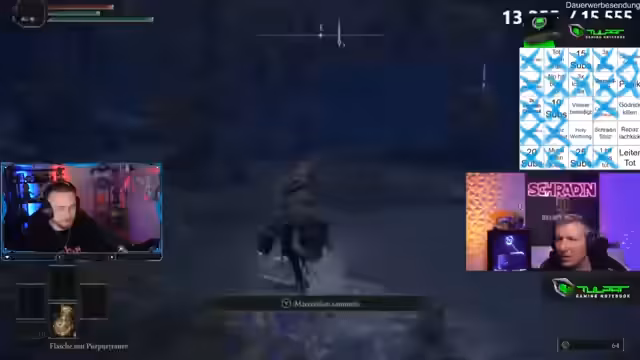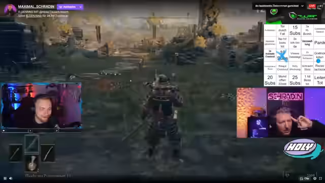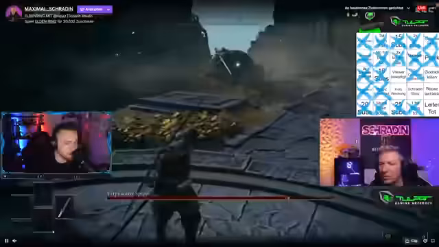 03:46:24Der Streamer analysiert den Spielstil eines Zuschauers namens Schradin in Elden Ring, der Schwierigkeiten mit dem Boss Margit hat. Es wird festgestellt, dass Schradin nach mehreren Stunden Spielzeit das Gelernte wieder vergisst, was zu Frustration führt. Der Fokus liegt auf Schradins Aufmerksamkeitspanne und der Tatsache, dass er nach sechs Stunden Live-Spielzeit erschöpft ist. Es wird angemerkt, dass er dazu neigt, wegzulaufen und einen leeren Stab zu benutzen. Der Streamer schaltet kurz zu Reapers, um dessen Reaktion zu sehen, und stellt fest, dass dieser frustriert aussieht. Es wird über die Möglichkeit gewitzelt, dass Schradin Godric im ersten Versuch besiegt, was zu einer Verlosung einer PS5 Pro führen würde. Der Streamer vermutet, dass Godric für Schradin einfacher sein könnte als Margit, da er ein anderes Moveset hat. Es wird diskutiert, dass Schradin den Bereich zu Godric erst erreichen muss, was aufgrund der Gegner schwierig sein wird. Der falsche Ansatz im Spiel wird kritisiert und vorgeschlagen, dass Schradin sich auf Leben und Ausdauer konzentrieren und eine Katana mit Schmiedesteinen verbessern sollte, um mit R1 und L2 anzugreifen. Es wird festgestellt, dass Schradin bereits ein hohes Level hat, aber seine Werte falsch verteilt sind.