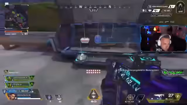 04:32:09Beim Versuch, Apex-Münzen aufzuladen, treten wiederkehrende technische Probleme auf, die nach mehreren PC-Neustarts nicht gelöst werden. Der Streamer wechselt daher von der Tastatur-Maus-Konfiguration auf den Controller, um in höherwertigen Lobbys zu spielen, was mit dem Codewort 'Fotze' signalisiert wird.
