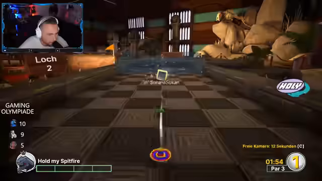 00:55:22Die Gaming-Olympiade beginnt mit dem ersten Mini-Game, Pummelparty. Die Teams treten gegeneinander an und sammeln Punkte. Der Streamer und seine Mitspieler zeigen sowohl sportliche Ambitionen als auch viel Humor und Frustration über den eigenen Spielstil. Kommentare und Reaktionen auf das Geschehen dominieren den Chat, wobei der Spaßfaktor und das gemeinschaftliche Erlebnis im Vordergrund stehen. Die Ergebnisse der einzelnen Spiele werden live kommentiert und analysiert.