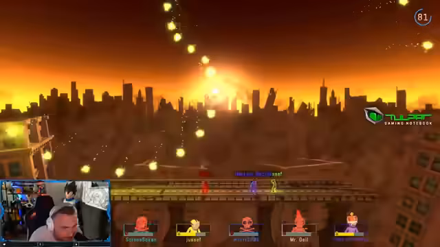 01:03:05Nach Pummelparty folgen weitere rasant Mini-Games. Im Spiel "Stair Surfer" geht es um Geschicklichkeit und Schnelligkeit, während in "Laser Harms" Teamwork und schnelle Reaktionen gefordert sind. Der Streamer erlebt Hochs und Tiefs; er ist mal vorne, mal hinten in der Rangliste. Die spannungsgeladenen Momente und die Freude über erfolgreine Manöver werden von den Teilnehmern und dem Chat bejubelt, während Rückschläge mit Humor oder Frust kommentiert werden.