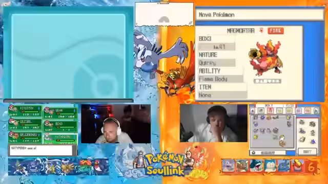05:51:55Der Streamer diskutiert mit seinem Mitspieler Coco über die Spielstrategie. Sie planen, sich auf die Top 4 zu konzentrieren und einen Deal zu schließen. Es geht um die Teams, die gegnerischen Pokémon und mögliche Schwachstellen. Der Streamer betont die Wichtigkeit der Link-Partner in der Soullink-Regel, dass bestimmte Pokémon zusammengehalten werden müssen. Er überlegt, welches Pokémon er auswechseln soll, und ist besorgt über mangelnde Abdeckung für bestimmte Typen.