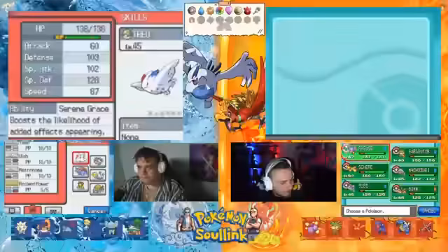 02:30:52Der Fokus wechselt zu Pokémon HeartGold/SoulSilver. Die Spieler planen ihre Teams für einen 'Soullink Randomizer' Challenge. Wichtige Pokémon wie Lavados und Togepi werden diskutiert. Es geht um die Wahl der Pokémon, die Typenvielfalt und die Erstellung von starken Teams. Die Wahl von Krabbi und Libelldra wird als 4 zu 4 Situation kritisch gesehen.