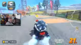 03:23:21Im höheren Rangbereich wird es schwieriger, da alle Münzen schnell aufgesammelt sind und es vor allem darauf ankommt, den Spieler mit dem Schock zu kennen und sich dahinter zu positionieren oder auszuweichen. Der Streamer stellt fest, dass der erste Platz oft sehr instabil ist und man leicht Plätze verlieren kann, besonders auf den geübten Karten. Ein Rückschlag auf Platz 18 wird als frustrierend beschrieben.