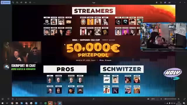 03:04:37Der Streamer spricht über die Preisverteilung des Turniers, wobei das Gewinnerteam 6.000 Euro pro Spieler und einen Pokal erhält. Skinport, ein deutscher CSGO/CS2 Skin Marketplace, ist der einzige Sponsor des Turniers und hat 50.000 Euro zur Verfügung gestellt. Der dritte Platz erhält ebenfalls Preise, darunter Düsenjäger und 1.000 Euro pro Kopf. Der Streamer betont, dass Skinport ein sicherer und günstiger Partner ist und dass er froh ist, keinen Gambling-Partner zu haben. Es wird klargestellt, dass alle CS-Streamer und Pros während des Turniers Partnerschaften mit Glücksspielseiten ausblenden sollen. Jeder Teilnehmer muss live sein und eine Facecam mittig links platzieren. Cheaten ist natürlich verboten. Es wird überlegt, regelmäßige CS Cups zu veranstalten. Abschließend wird betont, dass das Mental-Game wichtig ist und man nicht aufgeben soll. Der Streamer lobt die Website des Turniers und kündigt an, dass das Map-Voting bald startet.