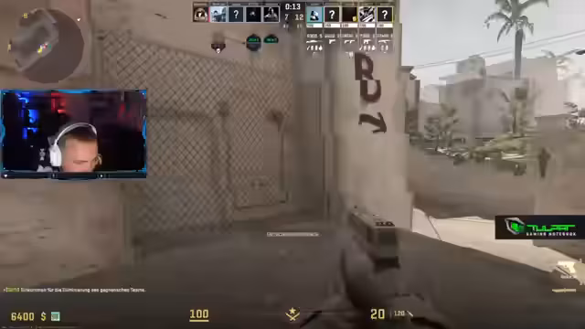 12:03:52Die Situation wechselt zu einer aggressiven Offensive. Der Streamer und sein Team planen einen koordinierten Angriff, um den Gegner unter Druck zu setzen und den Bombenplatz zu sichern. Dabei werden verschiedene Einstiege und gleichzeitig durchgeführte Aktionen diskutiert, um die Verteidiger des Gegners zu überwältigen. Das Ziel ist es, das Spiel zu kontrollieren und den Bombenplatz schnell zu nehmen, um so den Sieg in der Runde zu sichern.