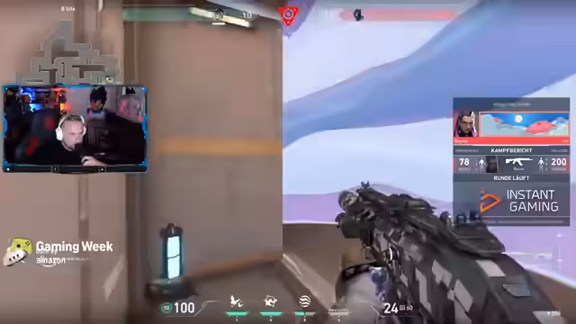01:00:09Es wird ein freundliches Spiel zwischen dem Streamer und einem Chat-Teilnehmer namens Torbinio ausgemacht. Wenn der Streamer gewinnt, soll er einen UFC-Kampf zeigen, wenn er verliert, soll Torbinio eine 50-Euro-PSN-Karte spendieren. Der Streamer nutzt die Gelegenheit, Instant Gaming, einen seiner Partner, zu bewerben und ist das offizielle Anlaufstelle für PSN-Karten. Zudem kündigt er die Amazon Gaming Week (AGW) an, bei der es bis zum 26.08. Rabatte auf über 10.000 Gaming-Produkte von Marken wie MSI, Logitech und Steelseries gibt, darunter auch das Headset, das er selbst trägt.