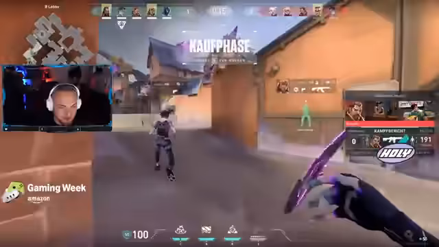 02:21:23Der Streamer spielt eine Runde des Spiels Valorant mit seinem Team. Die Kommunikation konzentriert sich auf die Analyse des gegnerischen Teams, das oft Smoke Granaten auf der Mittelposition einsetzt. Das Team entwickelt Taktiken wie das Faken von Angriffen auf Punkt A und das Vorbereiten eines Einbruchs über Markt B. Es kommt zu einigen kritischen Situationen, in denen Spieler überrascht werden. Trotz eines klaren Vorteils in einer Runde verliert das Team knapp, was zu Frustration und einem 'toxischen' Kommentar vom Streamer führt. Abschließend wird die Leistung des Teams bewertet, wobei einige Spieler für ihre starken Einbrüche gelobt werden.