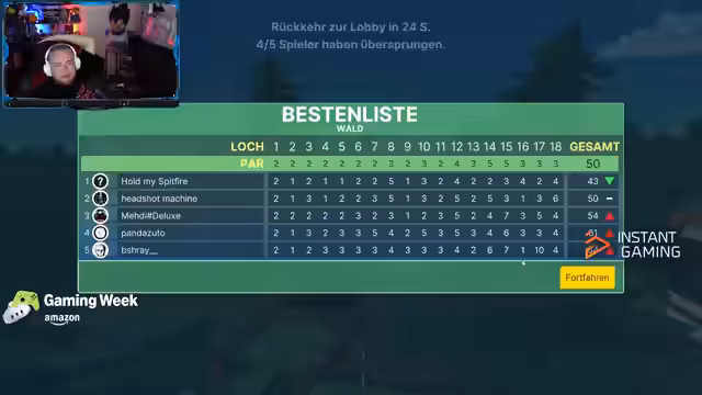 05:06:45Der Streamer und seine Mitspieler beginnen eine ernsthafte Runde Golf. Die Stimmung ist konzentriert und jeder Schuss wird analysiert. Ein unerwartetes Ereignis geschieht, eine sogenannte "Physik-Ente" erscheint, was das Spiel ins Lächerliche zieht. Der Streamer versucht, das Spiel ernst zu nehmen, wird aber immer wieder durch absurde Game-Mechaniken unterbrochen. Es wird über verschiedene Taktiken gesprochen und die Runde endet in einem Chaos aus verrückten Schlägen und Gelächter. Der Streamer gibt auf und schlägt die Segel für die Session.
