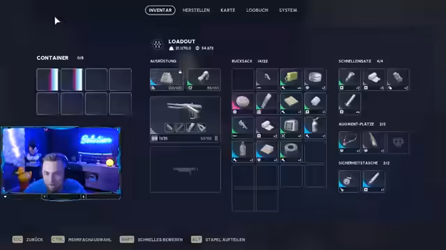 09:27:45Nachdem die Extraction geglückt ist, wird sofort der nächste Raid vorbereitet. Der Streamer denkt über die vorausgegangene Runde nach und plant für die nächste mit dem neuen Rucksack, der das Mitführen einer zweiten Waffe, wie der Natter, ermöglicht. Eine neue Taktik wird erwogen, in der die Gegner, die sich in einer Schlange anstellen, mit der Natter aus dem Rucksack überrascht werden können. Der Fokus liegt auf aggressiverem Vorgehen und mehr Power in der Ausrüstung.