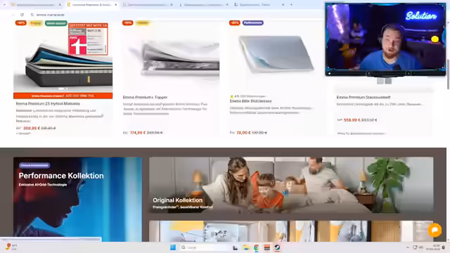 07:49:59Im Stream wird intensiv Werbung für das Unternehmen Emma gemacht, das Bettwäsche, Bettdecken, Lattenroste und Kissen anbietet. Der Streamer betont die hohe Qualität, kostenlose Retouren und kostenlosen Versand. Er empfiehlt besonders die Produkte und weist darauf hin, dass es bis zum 4.3. Rabatte von bis zu 50% gibt. Zusätzlich wird ein weiterer Rabatt von 5% über einen exklusiven Link im Chat beworben.