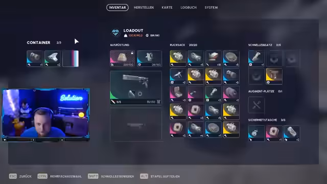 01:30:31Der Streamer kündigt den Start des „Essig Raids“ an und erwähnt die „Kammer des Erpels“, die wieder geöffnet ist. Er bereitet sich auf eine Expedition vor und sucht nach Mitspieler („Raider“), um gemeinsam zu spielen. Er sammelt Ressourcen, wie zum Beispiel Defibrillatoren und Medkits, und plant, eine Natter, ein Fahrzeug, für den Einsatz zu packen. Es herrscht eine angespannte Stimmung, da er verhindern möchte, dass er im Spiel getötet wird.
