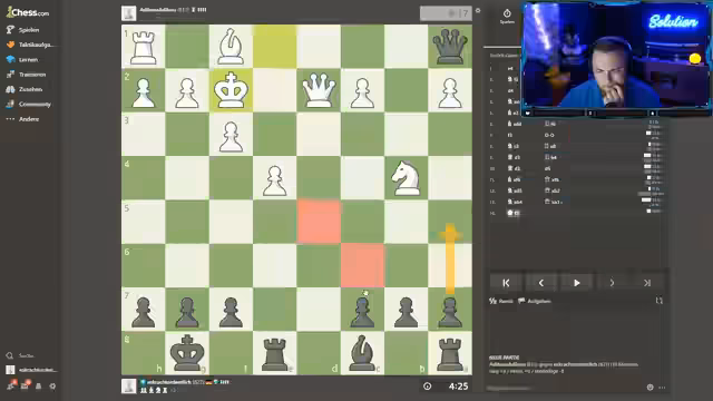 00:16:59Nach einigen warm-up Partien im Schach beginnt der Streamer, intensiver zu spielen. Er diskutiert seine Strategien, Eröffnungen und zukünftige Züge, wobei er in einer Partie auf Gewinn steht. Die Partie wird jedoch lang und unter Zeitdruck gespielt, was zu Frustration führt. Nach einer anscheinend gewonnenen Stellung verliert er die Partie durch einen Fehler und ist sichtlich verärgert. Er beschreibt sein Spiel als „Genie und Wahnsinn“ und gibt an, im Stream fast nie zu gewinnen, was ihn verärgert.