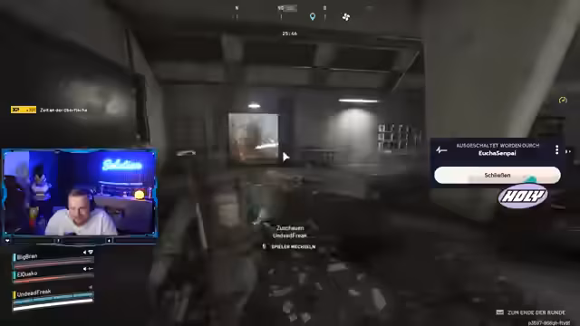 03:24:12Die Spannung steigt, als der Streamer mit seinem Team in eine komplexe Gefechtssituation gerät. Sie stoßen auf gegnerische Spieler und 'Rocketeers' und müssen schnell taktische Entscheidungen treffen, wie zum Beispiel das Positionieren und das Nutzen von 'Smokes'. Der Streamer beschreibt die Aktionen intensiv, wie das Ziehen von 'Grenades' und das Verteidigen gegen Flankierungsversuche, und zeigt seine taktische Anpassungsfähigkeit im Kampf.