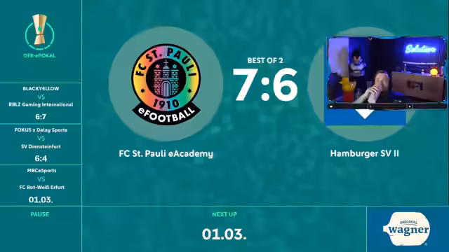 05:01:51Der Stream konzentriert sich auf denQualifier des DFB-E-Pokals, der in Kooperation mit Ergo stattfindet. Der Kommentator hebt hervor, dass der Gewinner ein Preisgeld von 30.000 Euro erhält und ins Finale nach Frankfurt am 21. März um 15 Uhr einzieht. Er empfiehlt den Zuschauern, Tickets für das Event vor Ort zu erwerben, bei dem auch viele bekannte Creator wie Gamerbrother und Svaro anwesend sein werden, und betont, dass es sich um ein großes Ereignis der E-Football-Szene handelt.